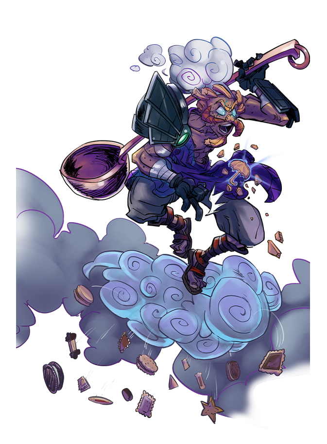 Always jovial, he fed the royal family with desserts worthy of the stars. But since the great Storm and the disappearance of Kyrioz, no one orders anything from him anymore. So Flotillo cooks... to keep from losing control.